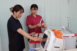 5東病棟は、循環器内科・消化器内科・産婦人科・歯科口腔外科の混合病棟であり、ハイリスク分娩や、手術療法を行う患者に多く対応しています。40台の心電図モニターを備えており、日々ICU、HCUと連携を図りながら急性期医療・看護が幅広く実践している病棟です。生命の誕生に携わる緊張感とともに高度医療に触れる中でやりがいを持つことができる環境があります。看護師、助産師が多く在籍し、知識や経験を活かしながら患者さんに寄り添い、安全・安楽な看護を心掛けるよう切磋琢磨しています。
